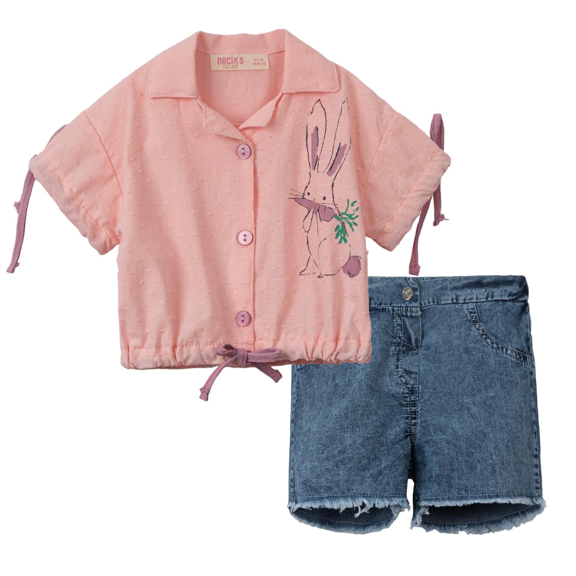 Tavşan Baskılı Kısa kollu Kot Şortlu Kız Çocuk İkili Takım (N01-242129)